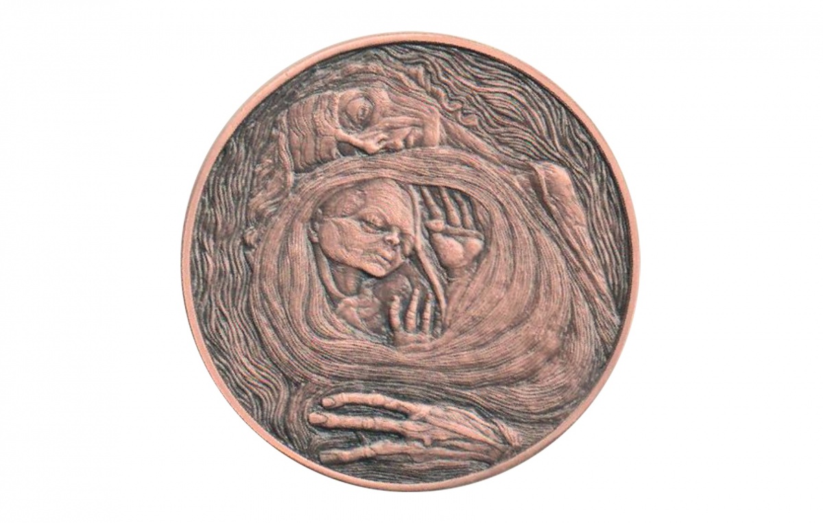míg az érem hátoldalán Schiele:Halott anya (1910) festményének részlete látható