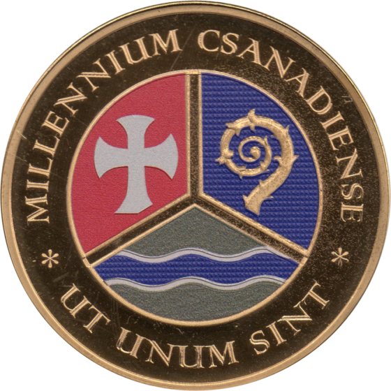 A Millennium Csanadiense 1030-2030 nevet viselő vándorkiállításra készítettünk érmeket, a kiállítás, amely öt ciklusban mutatja be a régi Csanádi Egyházmegye gazdag és mozgalmas múltját az 1920-as felosztásáig, valamint az elmúlt száz évet, ahogyan három önálló joghatási kerületre osztva ma Magyarországon a Szeged-Csanádi, Szerbiában a Nagybecskereki, Romániában a Temesvári egyházmegyeként él tovább.