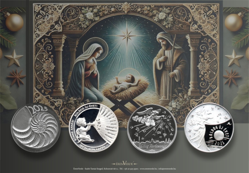 Az idei évben új Naptárérem készült, illetve a tavalyi érem idei köntösben is elérhető. Rendelhetőek a Karácsonyi és Újévi emlékérmeink horoszkópos illetve a 2025-ös új naptáros éremoldallal.